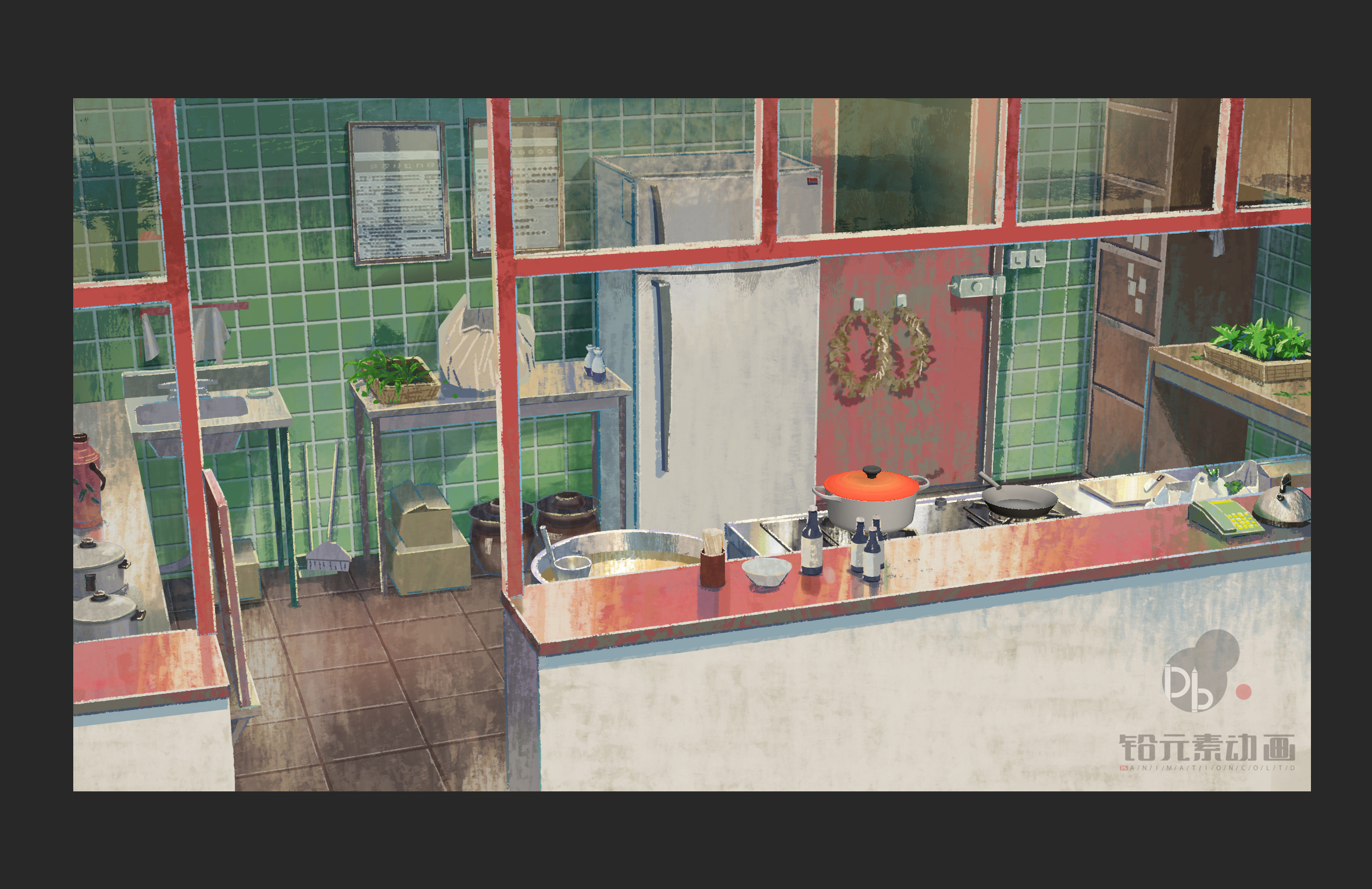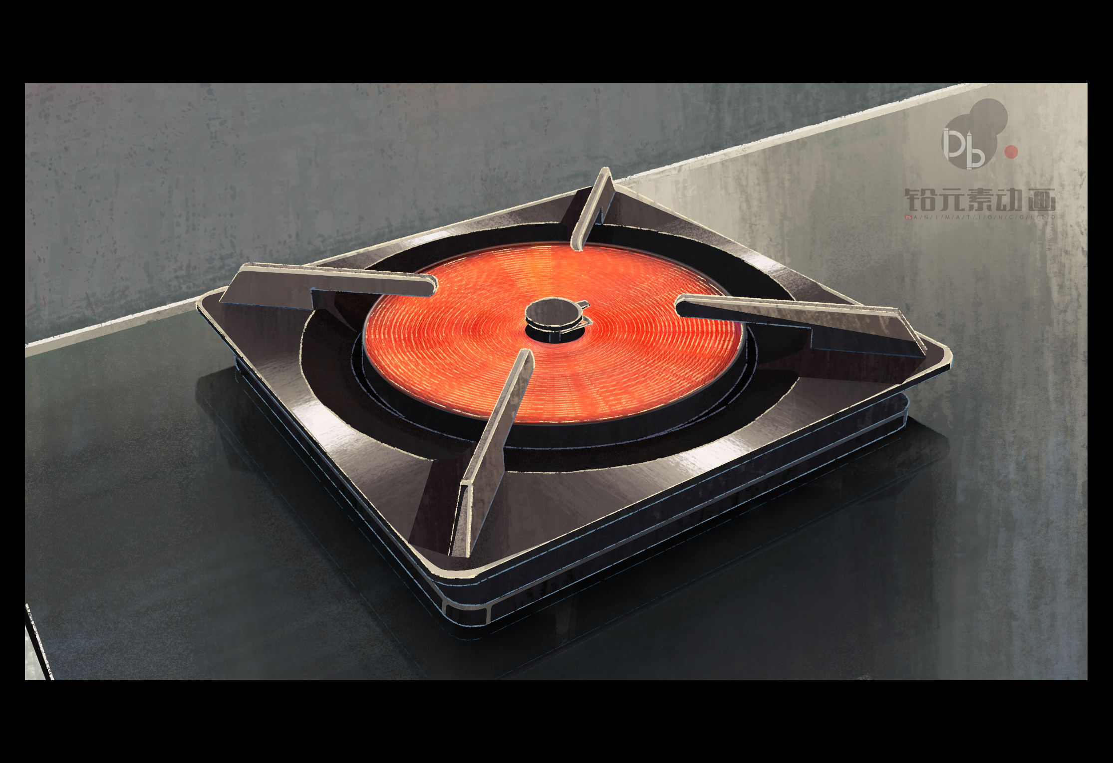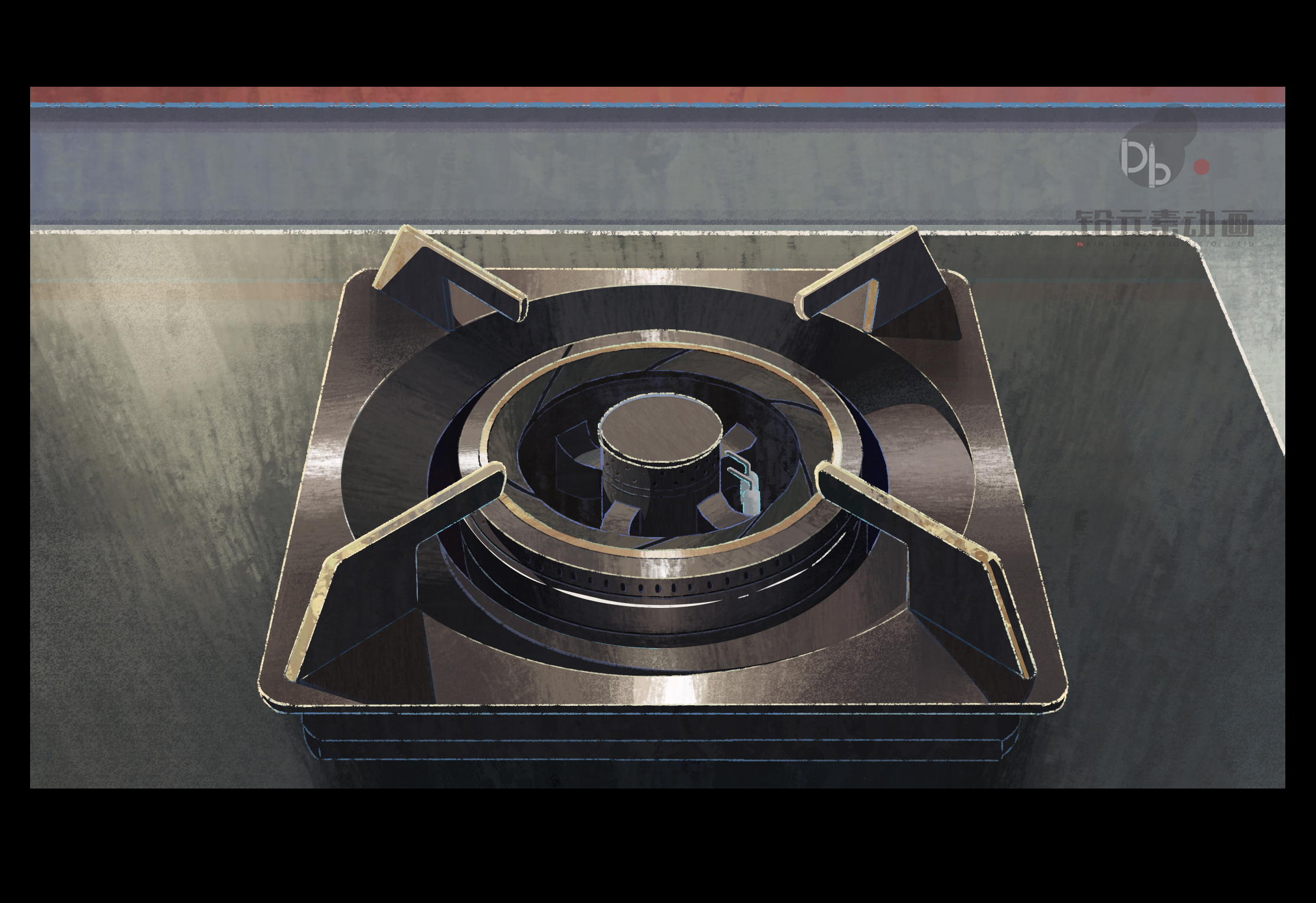 先由3D部门根据美术画出的鸳鸯灶设定图以及委托方提供的产品展示图,制作出高度还原产品比例和设计的3D模型,并在进入作画开始阶段前将该模型放置进每个镜头的构图设计稿里。