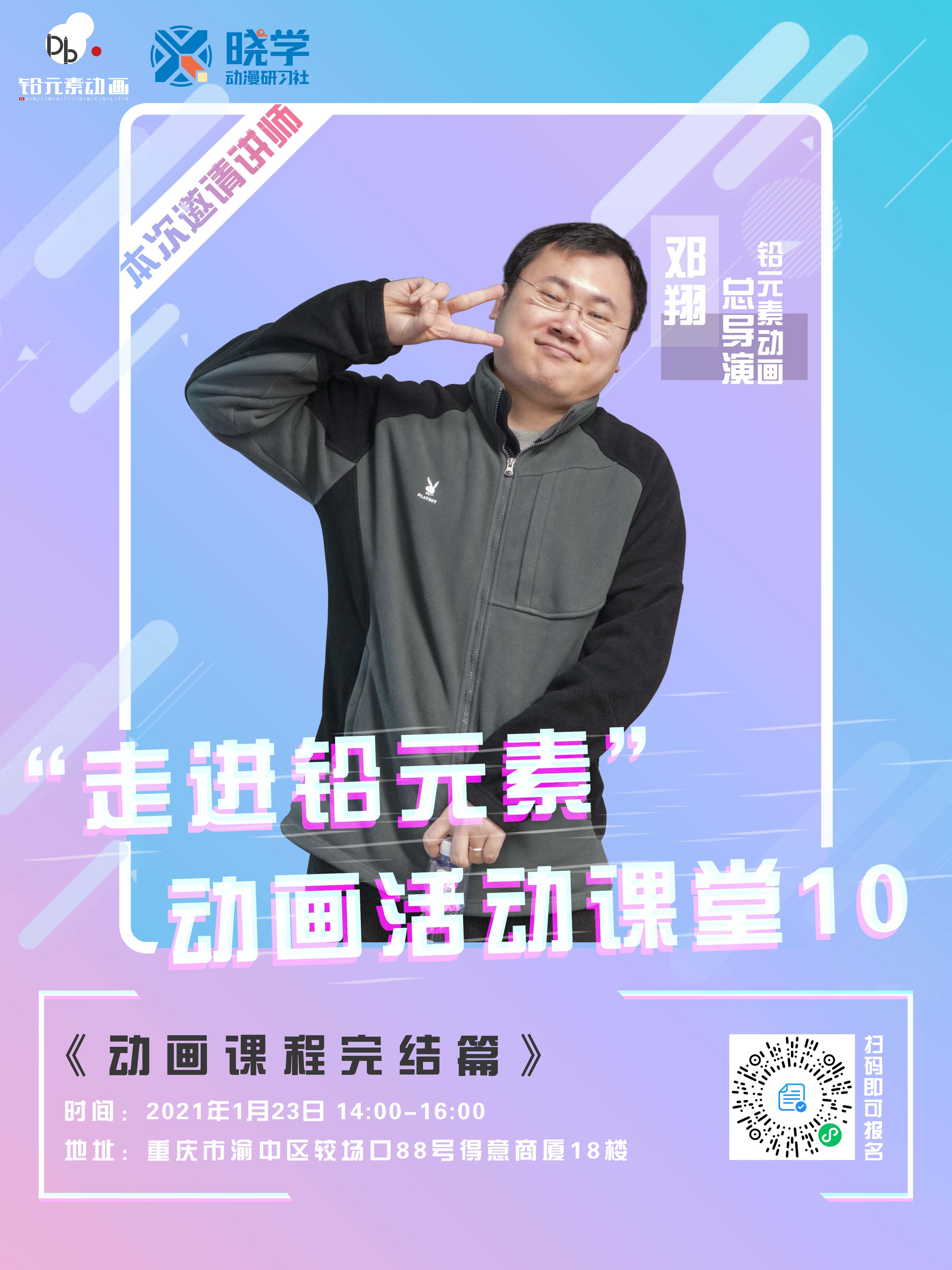 2020年,晓学动漫研习社铅元素动画主办的实验性课程“走进铅元素”动画活动课堂即将进入尾声,第十期——同时也是最后一期活动将在1月23日下午2点进行,邓翔总导演将会对整个活动进行回顾和总结!