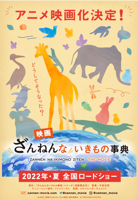 描写生物“残念”一面的书籍《残念生物事典》宣布了动画电影化的消息,该片预计在2022年夏上映。